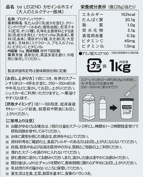 ビーレジェンド -beLEGEND- カゼイン&ホエイ 『大人のミルクティー風味』【1Kg】【オススメ】 身体を大きくしたい おきかえダイエット 筋肥大