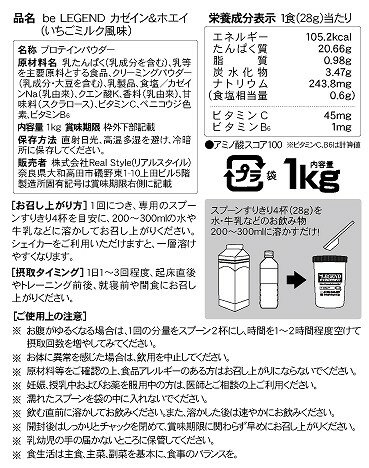ビーレジェンド -beLEGEND- カゼイン&ホエイ 『いちごミルク風味』【1Kg】【オススメ】 身体を大きくしたい おきかえダイエット 筋肥大